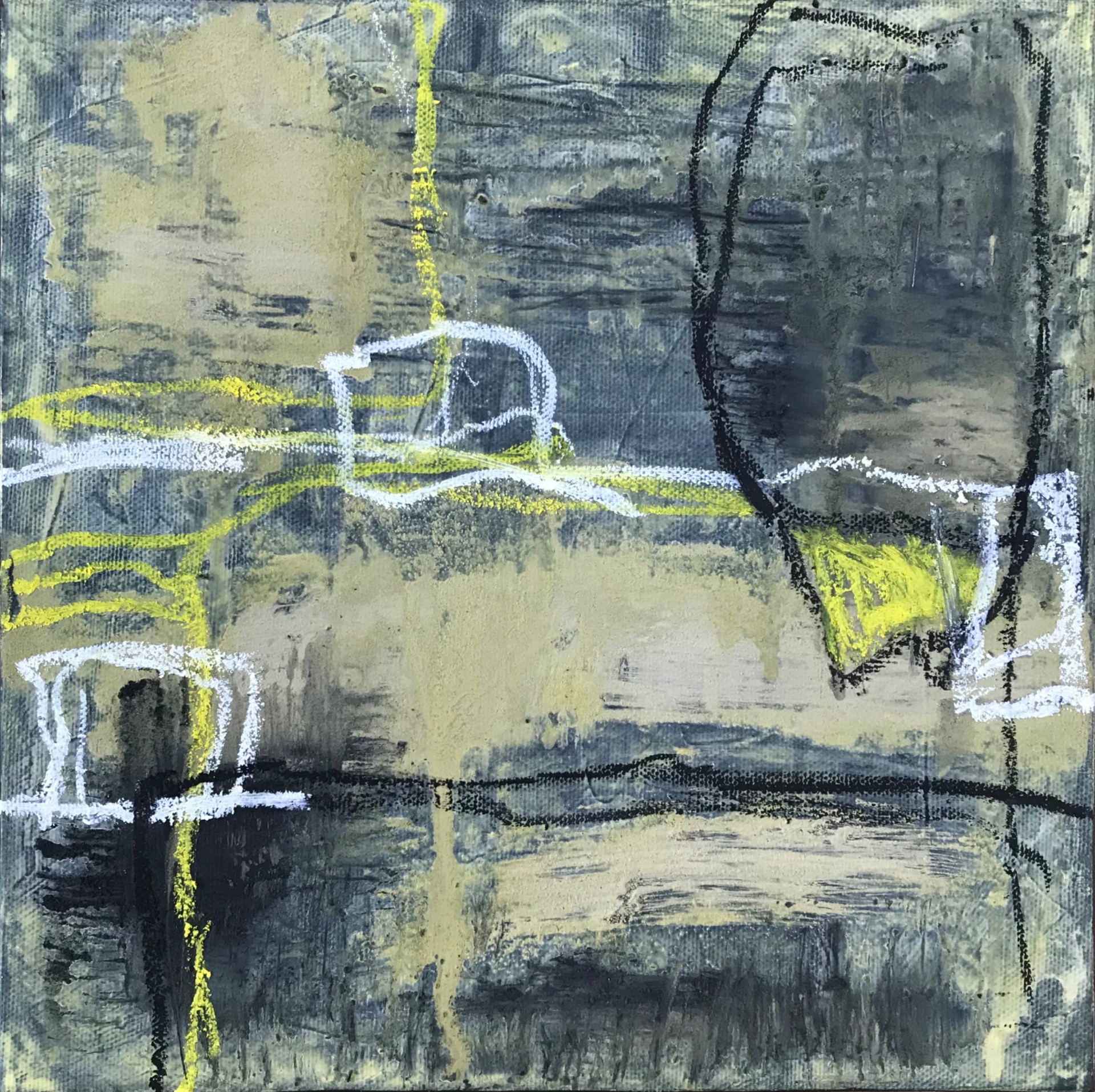 25x25 cm Schiefermehl, Asche, Kohle, Acrylfarbe, Kreide