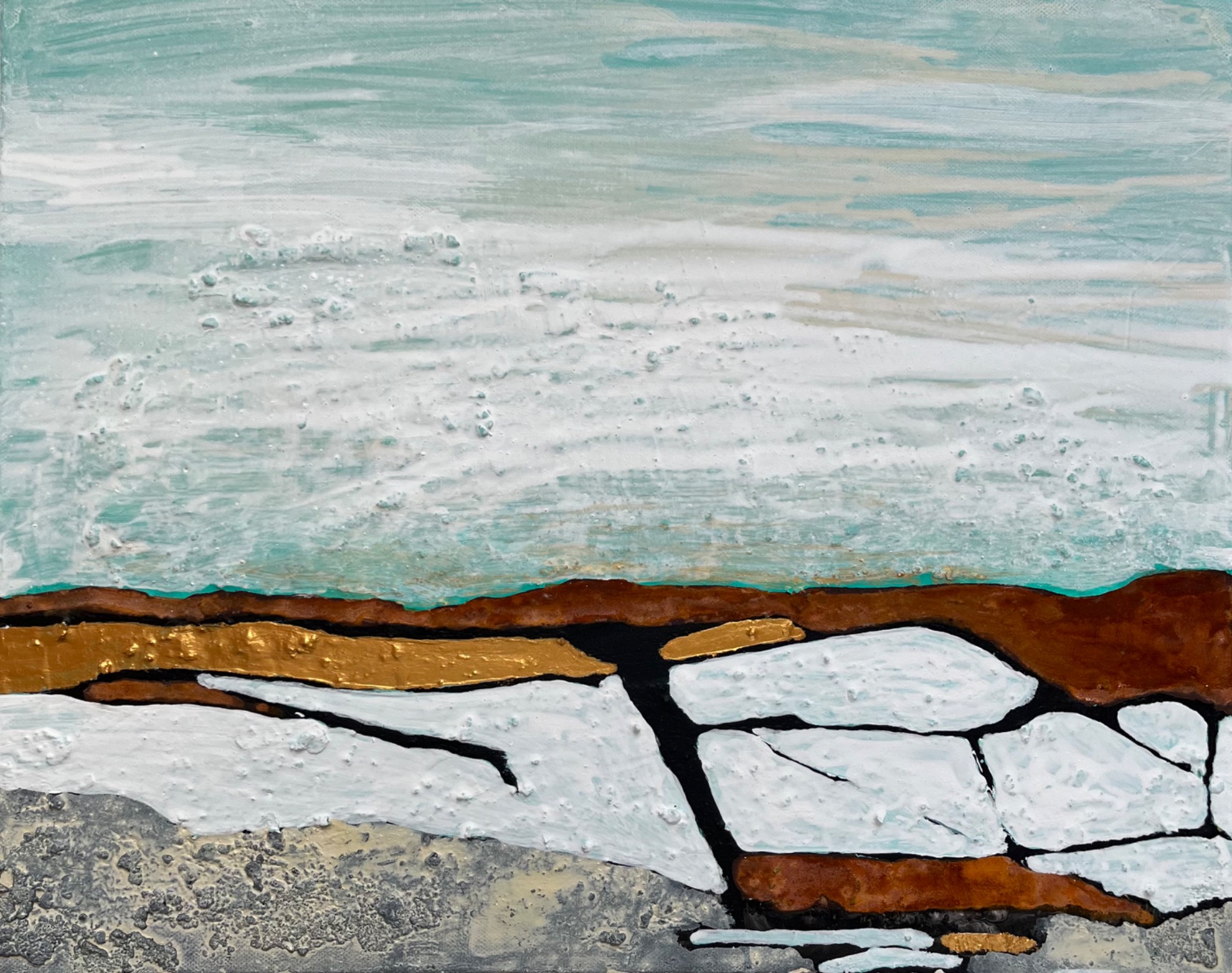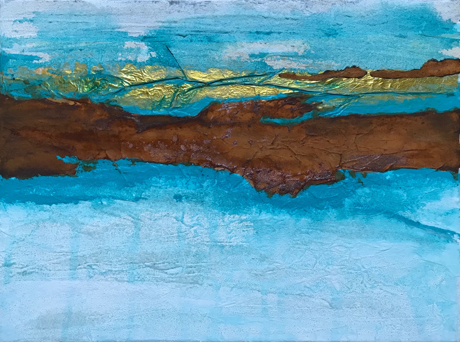 50x120 cm Goldfolie, Echt-Rost, Marmormehl, Sand, Acrylfarbe