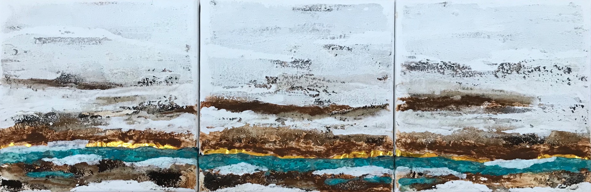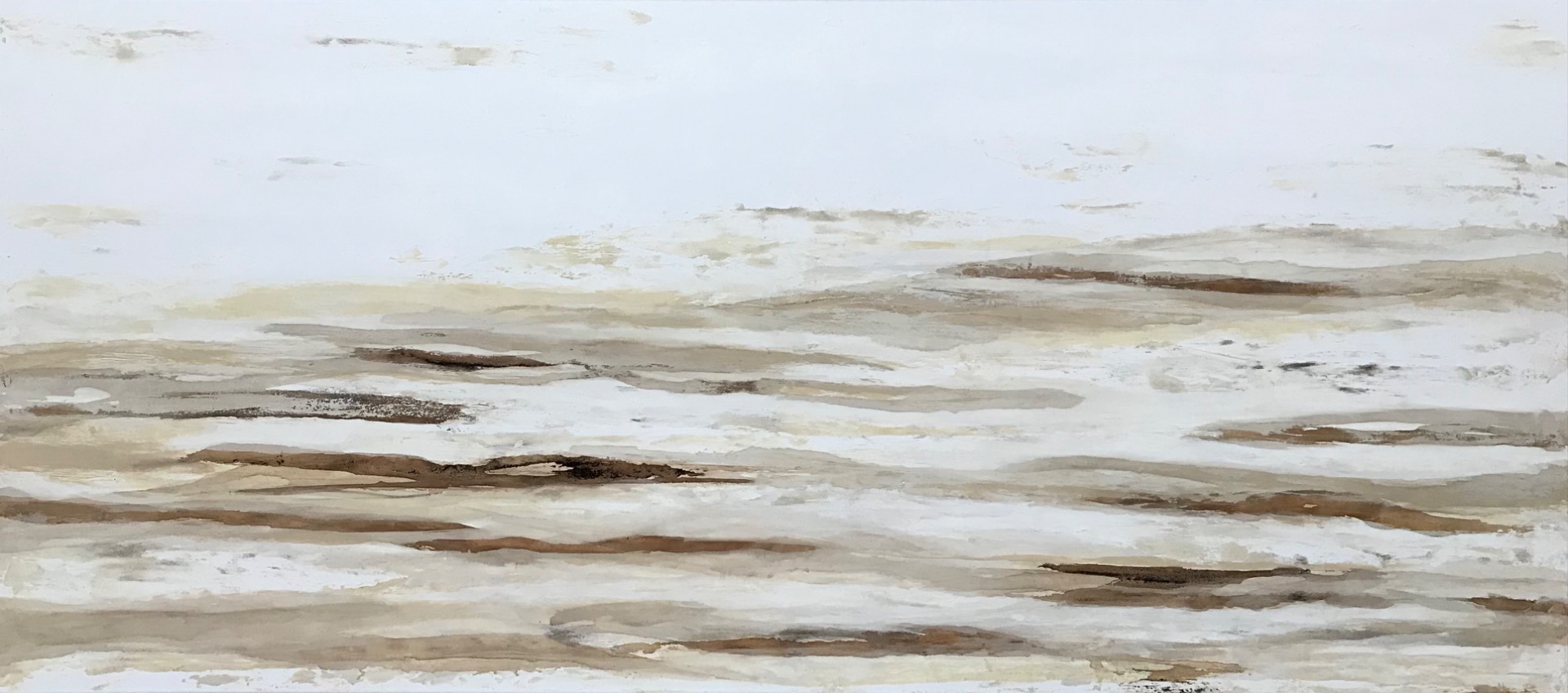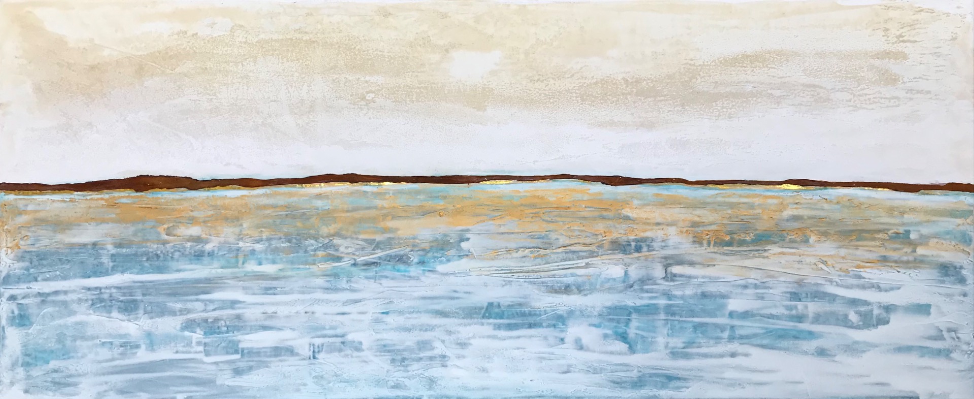 90x30 Rost, Kupferpatina, Kaffeesatz, Acryl auf Leinwand