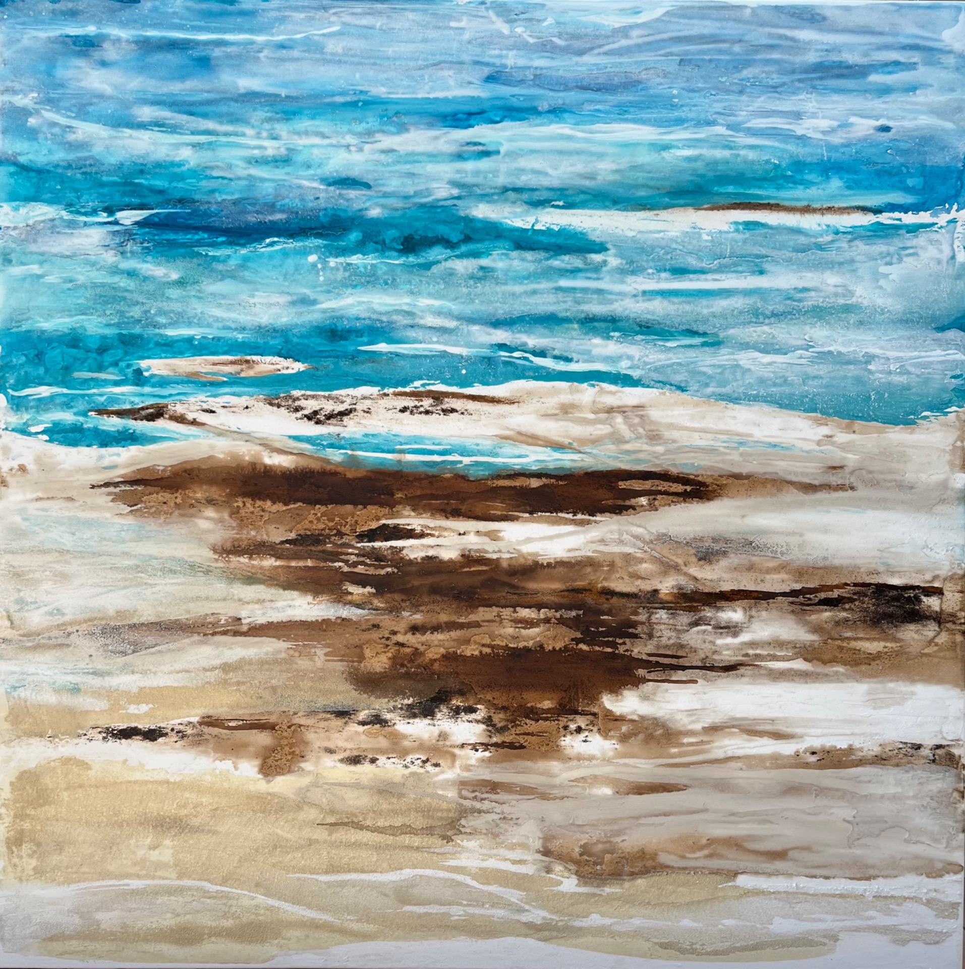 100x100 cm Kaffee, Kaffeesatz, Marmormehl, Sand, Acrylfarbe