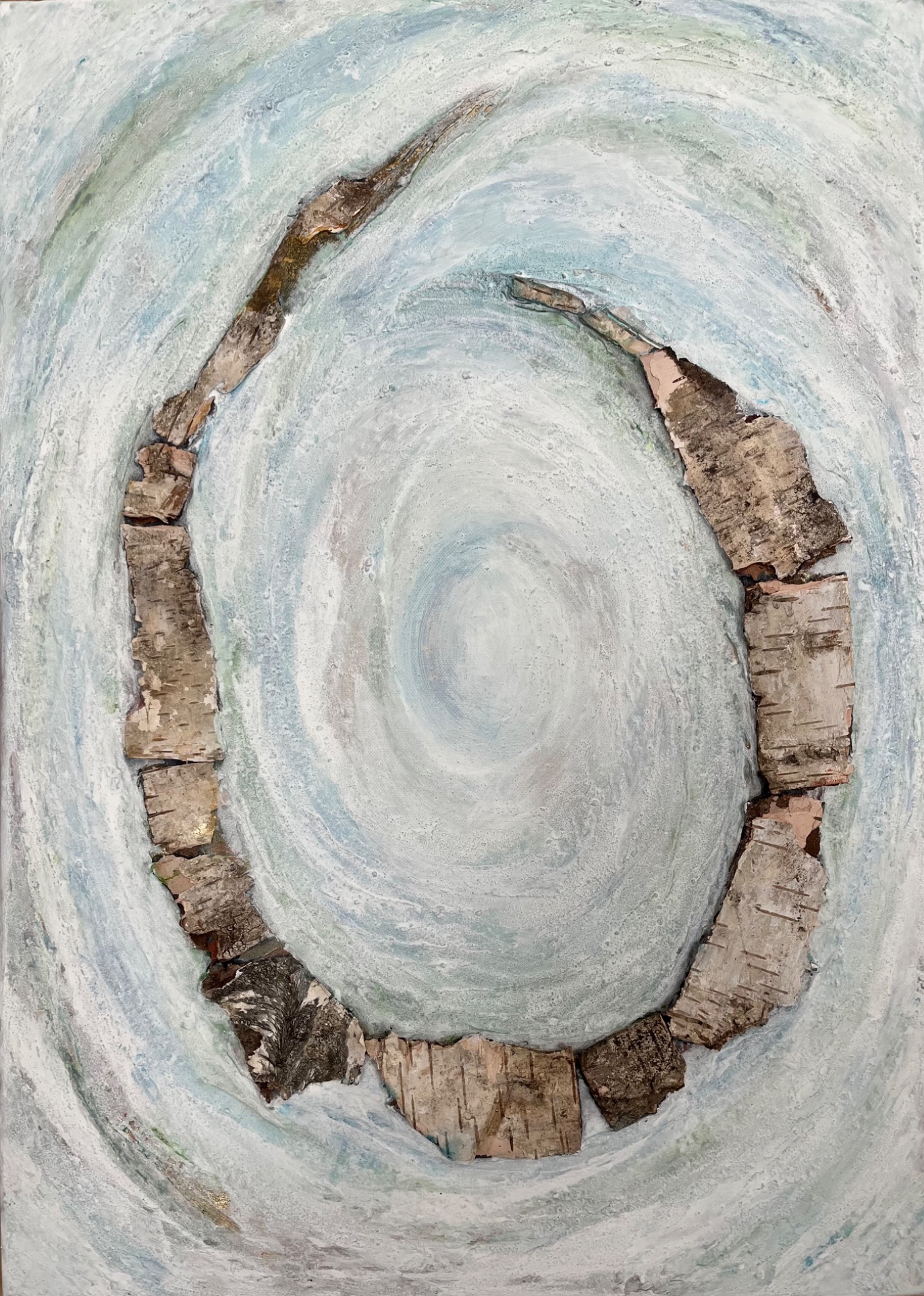 70x50 cm Birkenrinde, Marmormehl, Acrylfarbe