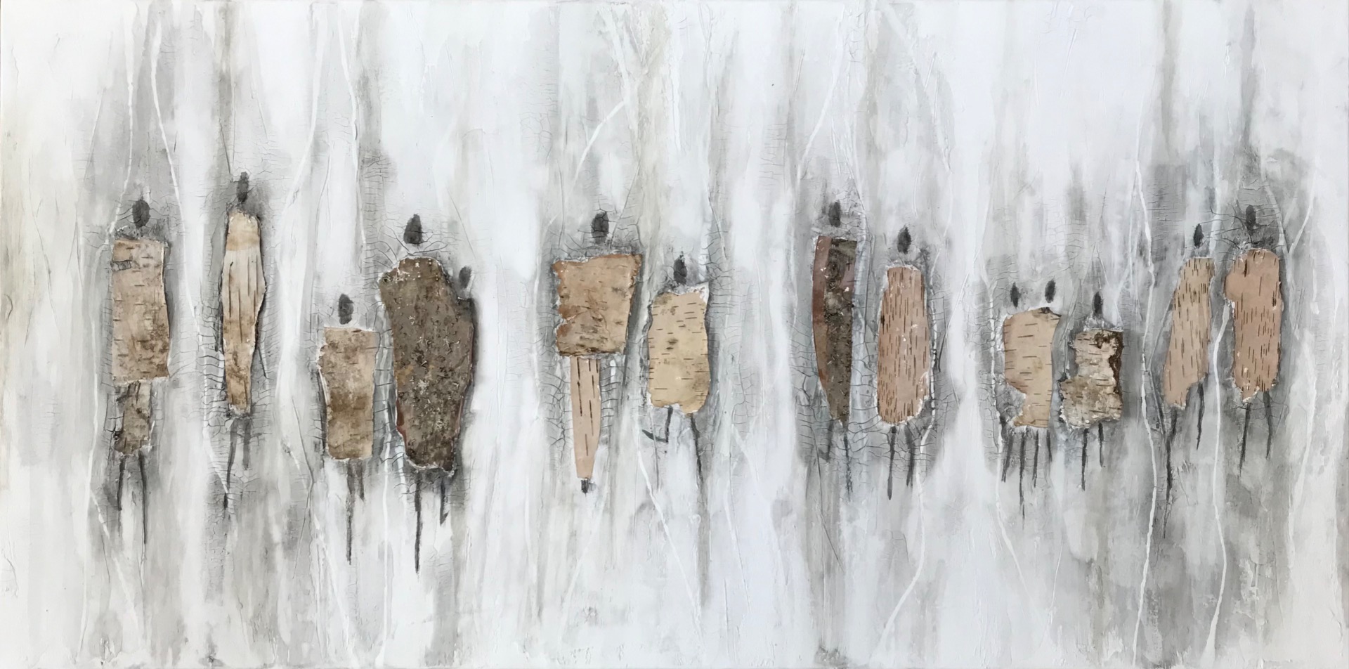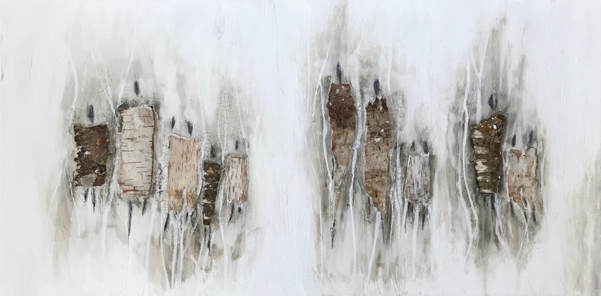 30x120 cm Birkenrinde, Marmormehl, Acrylfarbe