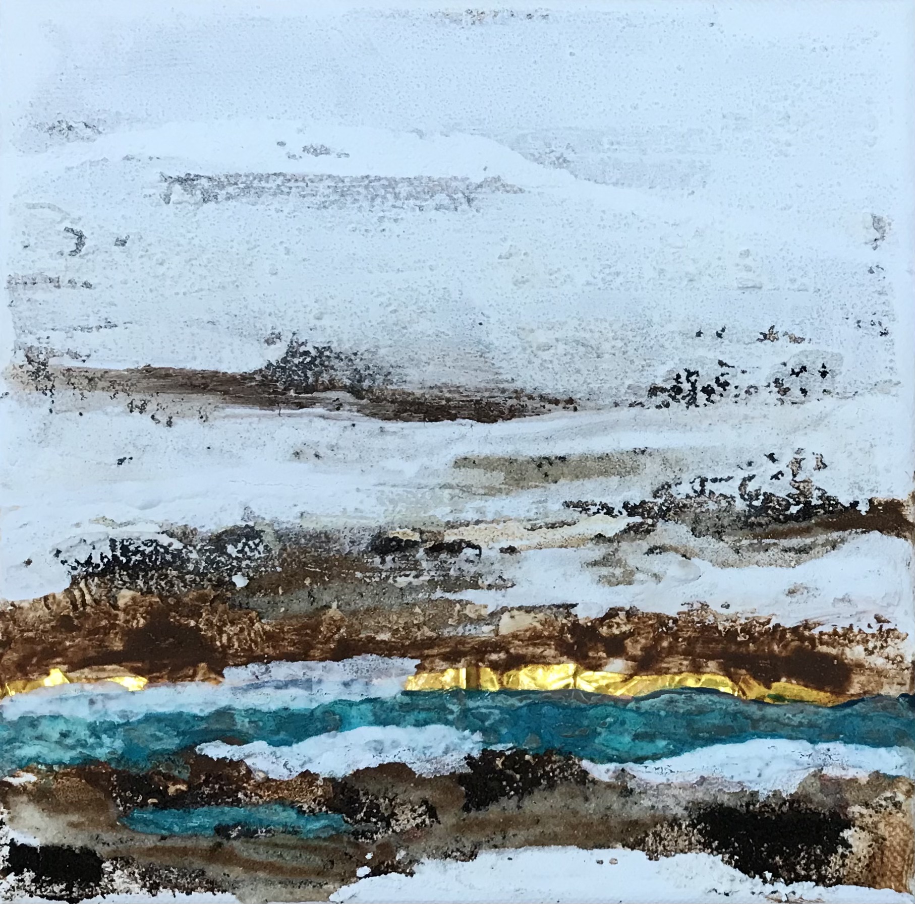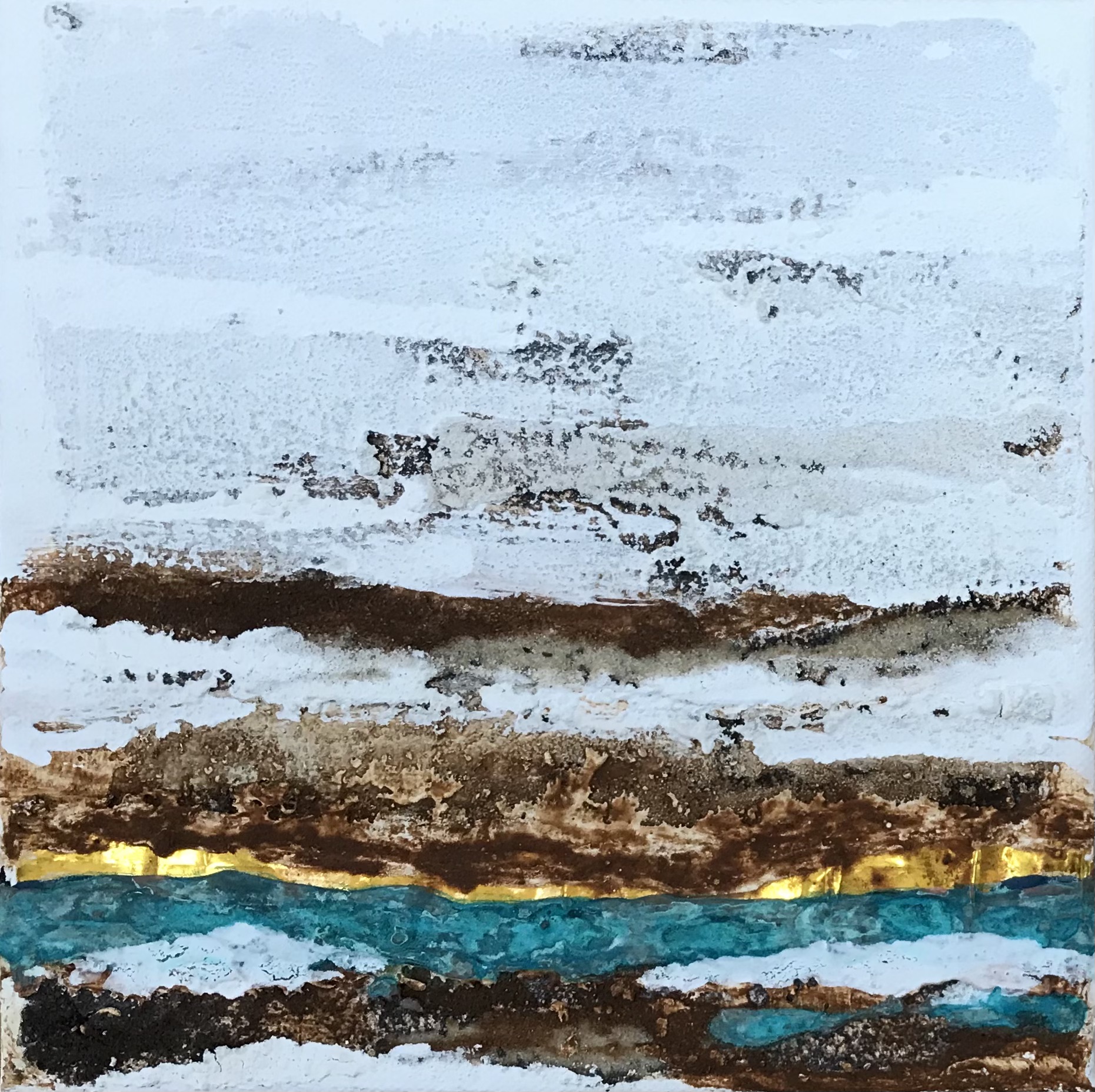 20x20 cm Kupferpatina, Goldfolie, Marmormehl, Sand, Erde, Kaffeesatz